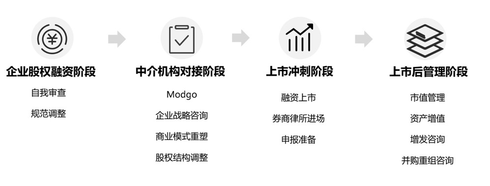 未来将成为全球化专业的一站式金融投行服务平台,为全球优秀的中小企业,尤其是中国为主的科创、双创类企业提供“上市辅导及融资相关的一体化优质服务”。为全球具有发展潜力的中小企业乃至大型企业提供上市辅导、规范治理、企业改制、财务顾问、上市融资、IPO 上市咨询、品牌塑造、市场策划及视频制作、注册等产品服务。